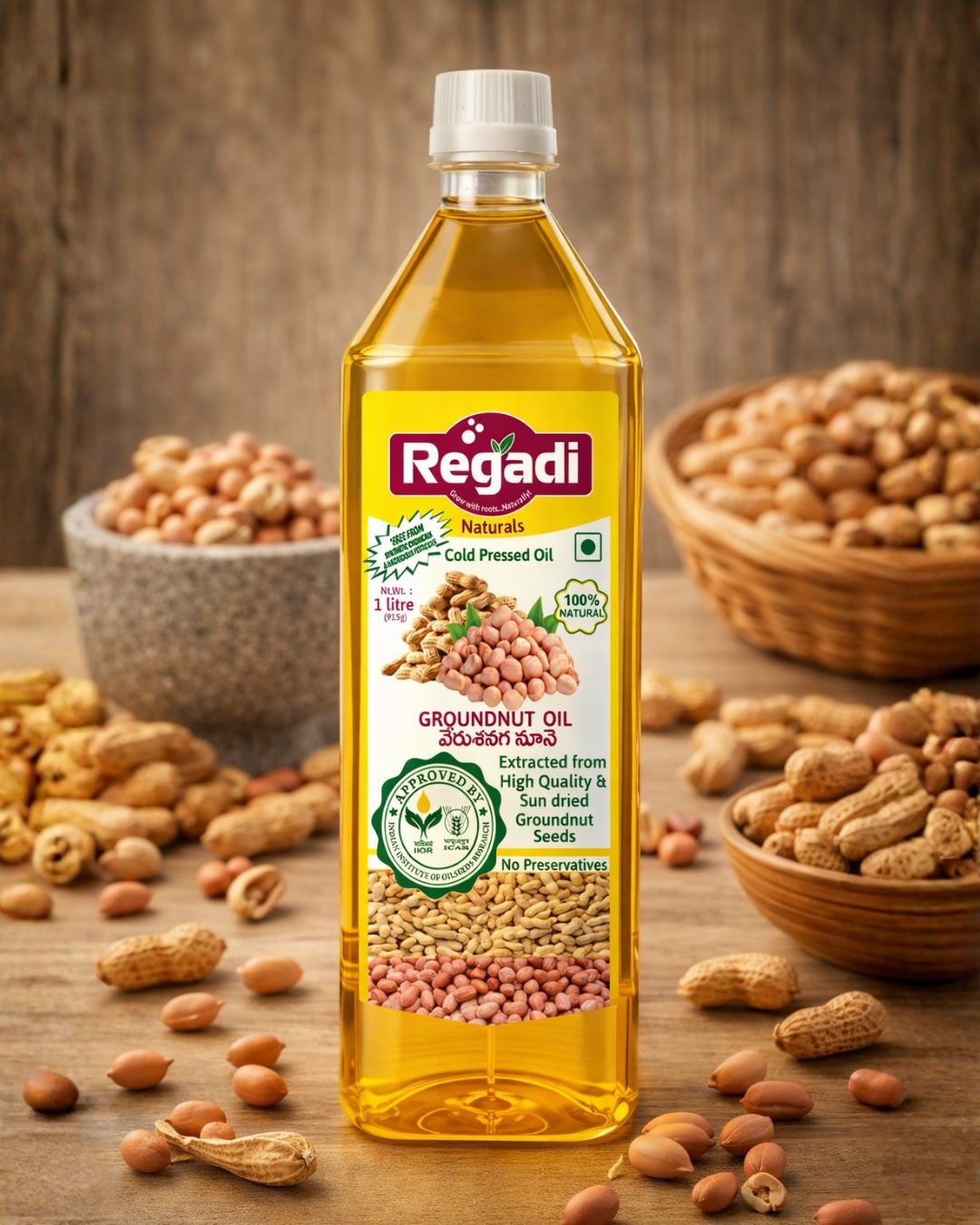 Regadi Naturals Cold Pressed Groundnut Oil - 1 LitreRegadi Naturals Cold Pressed Groundnut Oil – 1 Litre